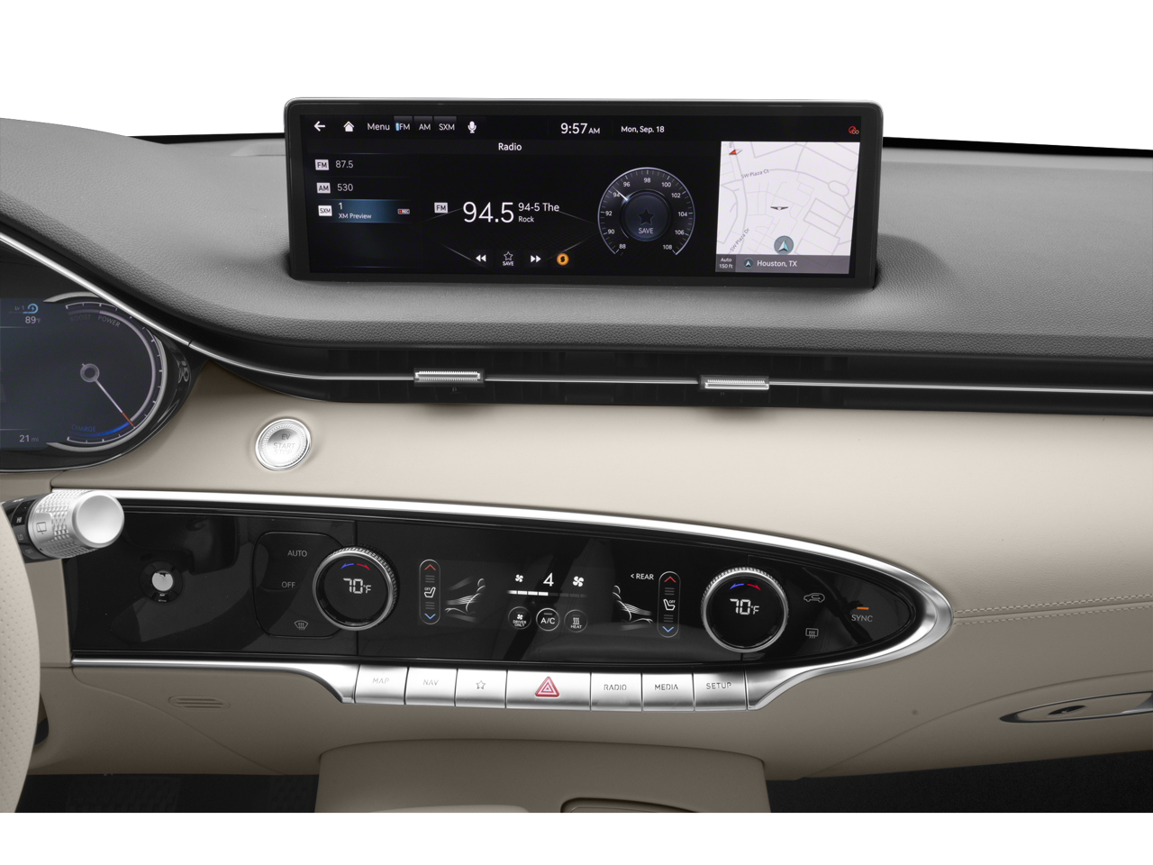 - Radio: 14.5" Navigation System w/AM/FM/HD Radio -inc: SiriusXM Radio w/90-day trial subscription (N/A in AK or HI), Genesis Connected Services, wireless Android Auto, wireless Apple CarPlay, Bluetooth® hands-free phone and audio streaming system, 8-speaker premium audio system, Wi-Fi hotspot, internal amplifier and USB connectivity