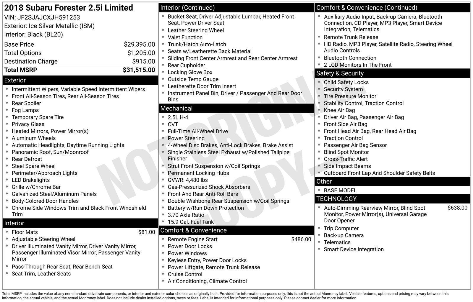 - Vehicle Name: Subaru Forester