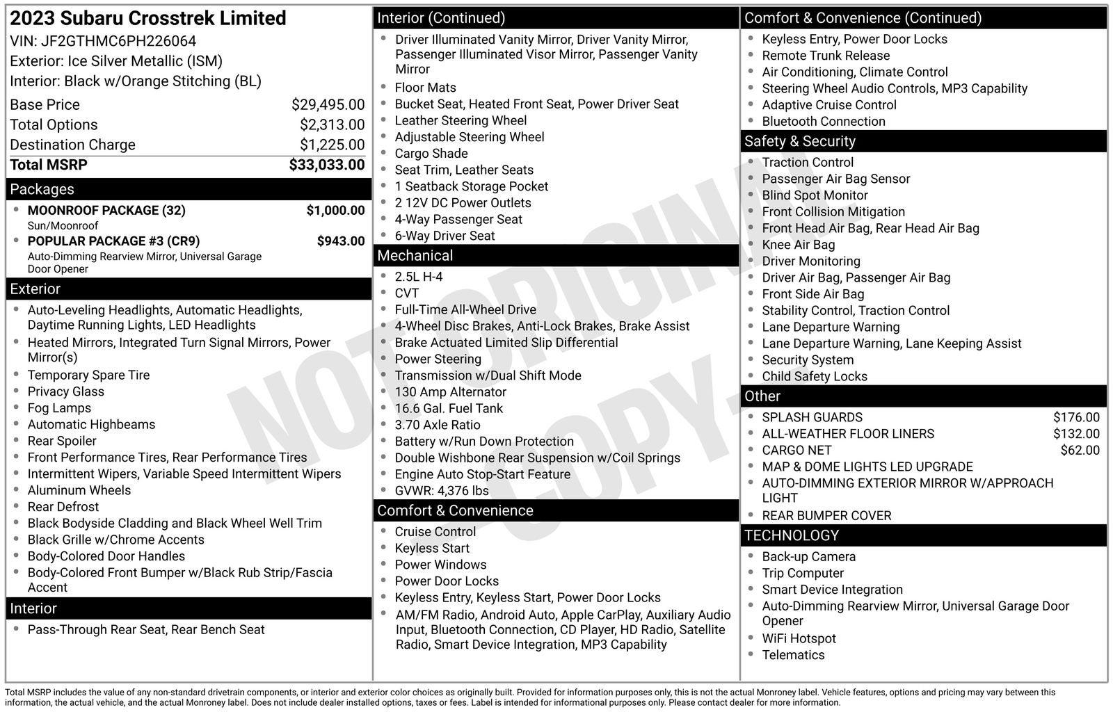 - Vehicle Name: Subaru Crosstrek