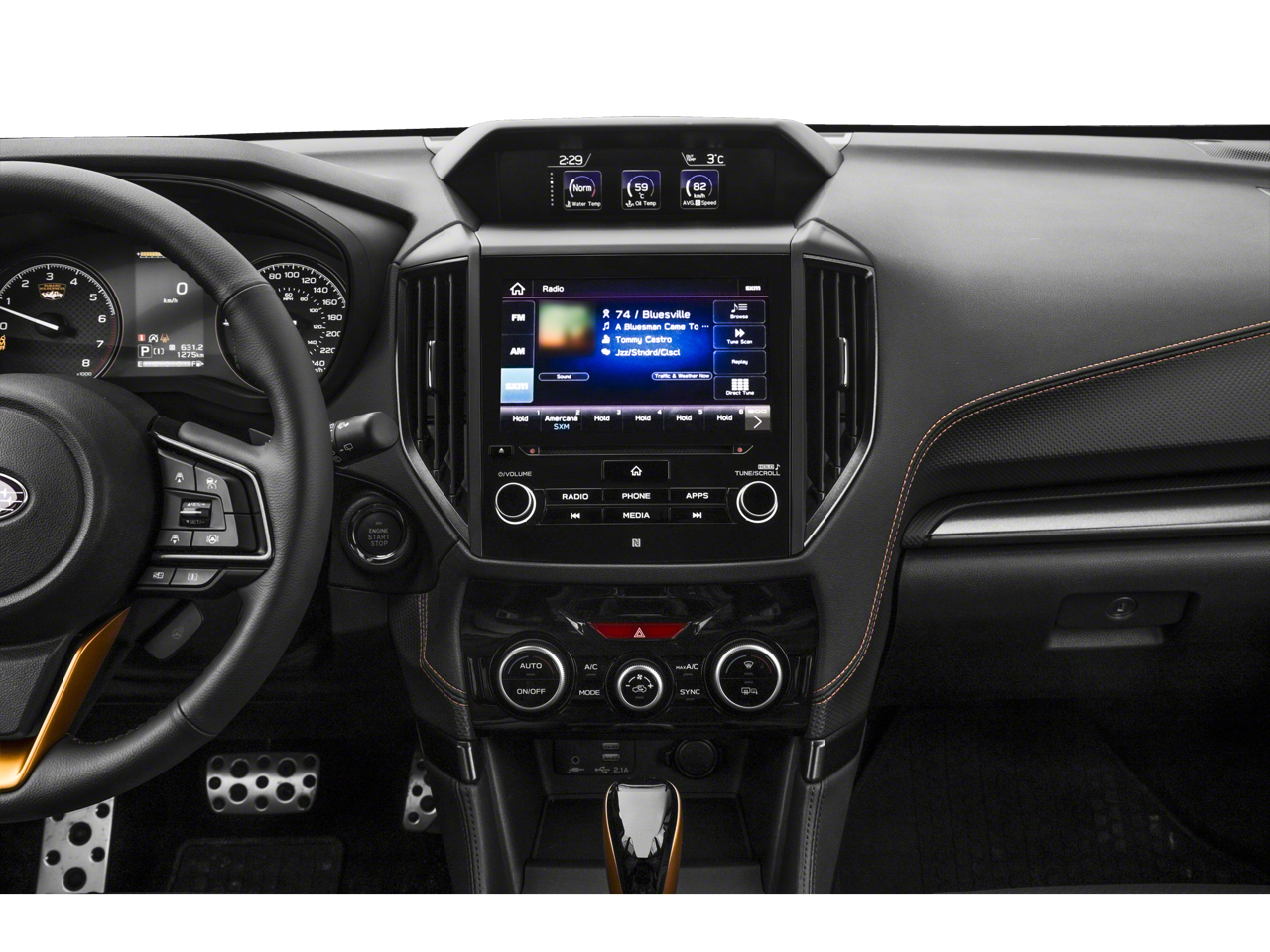 - Radio: Subaru STARLINK 8.0" Multimedia Plus System -inc: AM/FM stereo HD Radio, multi-touch gesture high resolution display screen, voice activated controls, Bluetooth® audio streaming, hands-free phone connectivity and hands-free SMS text messaging connectivity (refer to subaru.com for cell phone compatibility), Near Field Communication (NFC), iPod control capability, SiriusXM All Access radio and SiriusXM Travel Link (4 months free trial/subscription required after), smartphone integration for AHA, Android Auto, Apple CarPlay, Pandora and STARLINK cloud applications (refer to subaru.com for app availability), USB and Over The Air (OTA) audio system update, steering wheel controls for audio and Bluetooth®, 6 speakers, 3.5mm auxiliary input jack and dual USB A input/charge ports